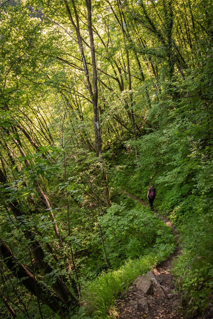 Continuando, il sentiero risale le dorsali settentrionali del Monte Faeit fino a raggiungere la sella a quota 700 metri, tra il Monte Campeon e il Monte Faeit. Da qui, il percorso scende dolcemente verso valle, passando per strade sterrate e asfaltate fino a riportarti al punto di partenza.