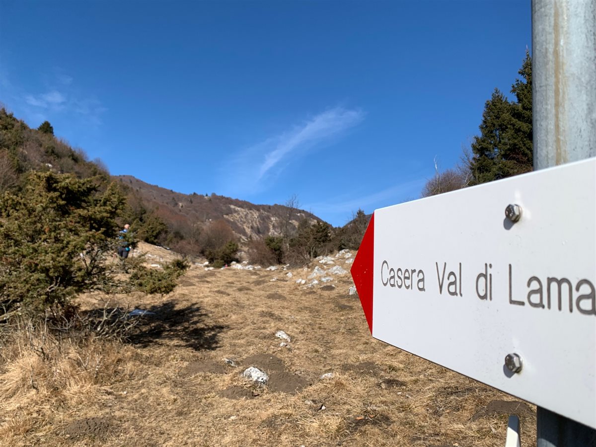 Salendo accelerano i battiti ma aumenta il senso di libertà: i profili dei sempreverdi si stagliano contro l'azzurro del cielo, pennellate di verde più intenso abbracciano le chiazze innevate, sembrando promettere la fine dell'inverno. Consumiamo il pranzo seduti sui massi ricoperti di muschio e licheni, nei pressi di Casera Val di Lama; l'aria frizzante porta aromi di montagna.