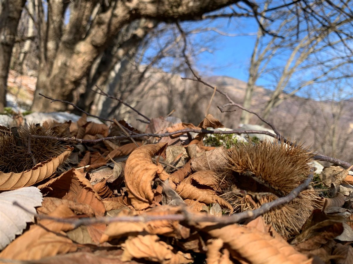 Il desiderio di evasione deve conciliare con le potenzialità, perciò non è ancora tempo per uscite solitarie: meglio affidarsi ad una guida esperta. Fabrizio ha messo su un variegato gruppo a cui mi aggrego entusiasta: persone di ogni età vociano allegre mentre indossiamo gli scarponcini da trekking. Qualche battuta partendo dal piccolo borgo di Mezzomonte, sopra Polcenigo, poi, a parlare, sarà lo scalpiccio dei passi sulle foglie secche. Potrebbe sembrare una soleggiata uscita autunnale: sul terreno numerose castagne, ma già ci salutano i guizzi gialli delle primule.