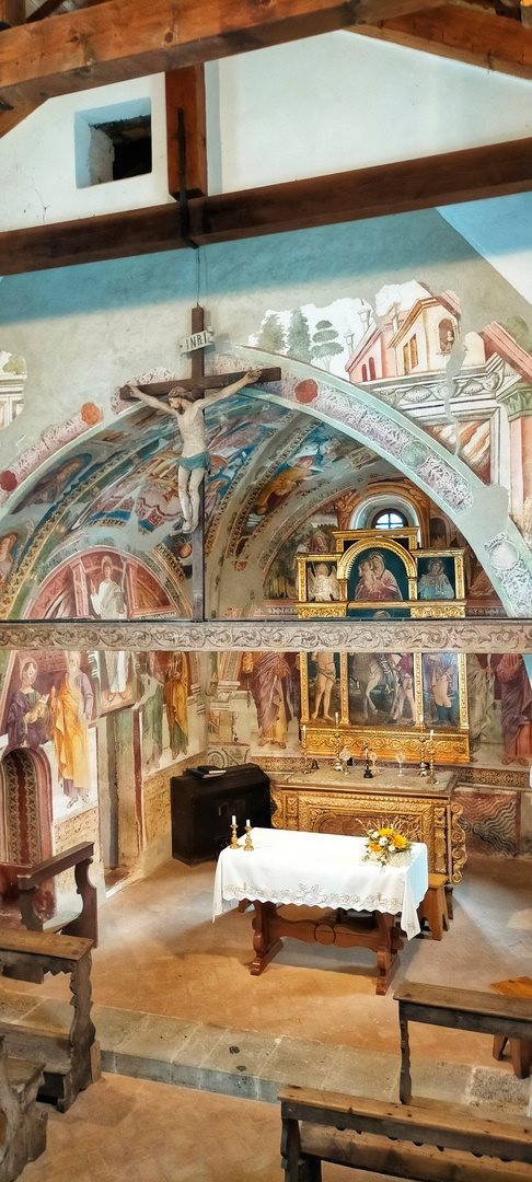 Socchieve, Socleif nella variante locale della lingua friulana, è un piccolo centro della Carnia, situato in posizione strategica tra le Dolomiti friulane e la Val Pesarina. Composto da numerose frazioni, è situato lungo la strada principale di collegamento con la più turistica Sauris, ma oggi ci fermeremo qui, nella borgata più antica, quella che dà appunto il nome al paese. Non aspettiamoci nulla di turistico “preconfezionato”, ma se vogliamo andare oltre le apparenze e conoscere la vera anima di un territorio siamo nel posto giusto: arte e natura ci aspettano lontano dal frastuono. Il più bel gioiello che gli abitanti vorranno mostrarvi è senz’altro la Chiesa di San Martino, che durante il periodo invernale rimane chiusa ma troverete senz’altro qualcuno disponibile ad aprirvi il portone per mostrarvi i tesori racchiusi: un ciclo di affreschi cinquecenteschi che decorano le pareti e la volta del coro che il maggior esponente della pittura friulana del Rinascimento, il pittore Gianfrancesco da Tolmezzo (1450-1511) ha lasciato al suo paese natale (come mostra la sua firma apposta nella arcata sinistra) ed un polittico in legno dedicato a San Martino che il pittore non fece in tempo a completare, ma che fu portato a termine da qualche allievo locale. Se passate di qui in inverno, il paesaggio sarà reso ancora più suggestivo dalla neve e dalla sovrastante collina della Pieve di Castoia, dall’antico cimitero che la circonda, con uno sguardo a est arriverete fino al fiume Tagliamento. Salendo a piedi si passerà accanto alla “Maina in somp da cleva”, piccola edicola votiva affrescata, dedicata all’Annunciazione e attribuita anch’essa all’artista socchievino. Dopo una mezza giornata dedicata all’arte niente di meglio che fermarsi in un piccolo ristorante della zona e gustare i più noti piatti tipici della Carnia: i cjarsons, pasta fresca ripiena, il frico a base di patate e formaggio locale, entrambi interpretati in molte varianti a seconda della zona, e il toc di vore accompagnati dalla polenta socchievina.