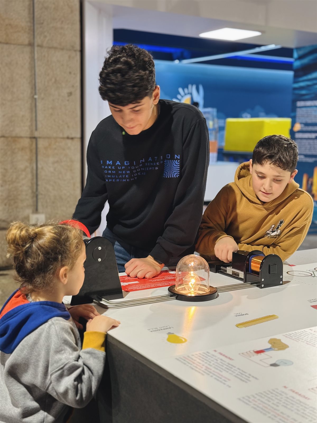 - Fenomena: il cuore interattivo del museo, dove il motto è "toccare per capire". In questa sezione, exhibit hands-on permettono di esplorare fenomeni fisici come pendoli danzanti, vortici e suoni, accompagnati da un coinvolgimento sensoriale totale. Dedicata ai più curiosi, Fenomena è divisa in aree tematiche che approfondiscono argomenti come fluidi, elettromagnetismo, suoni e luci.